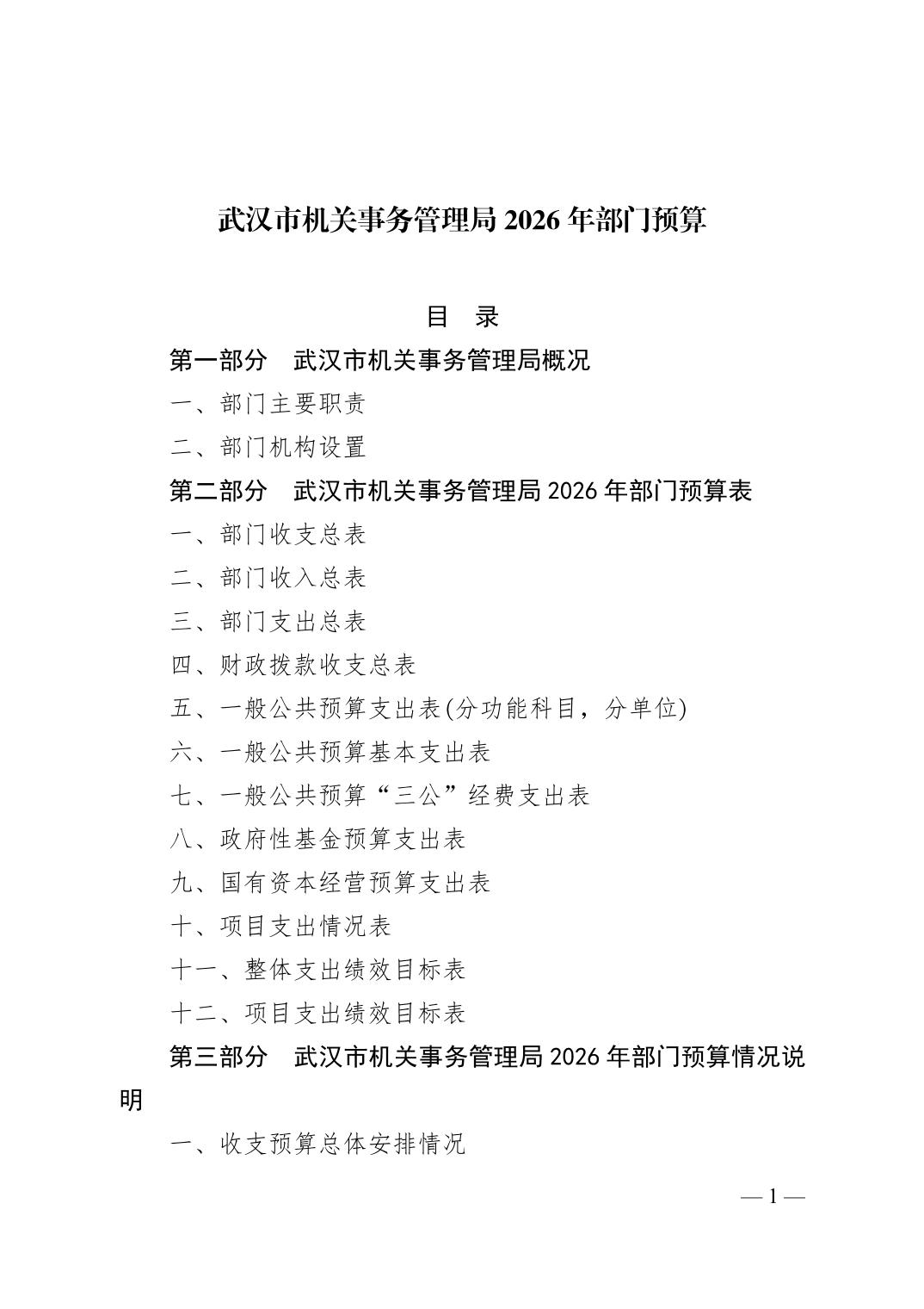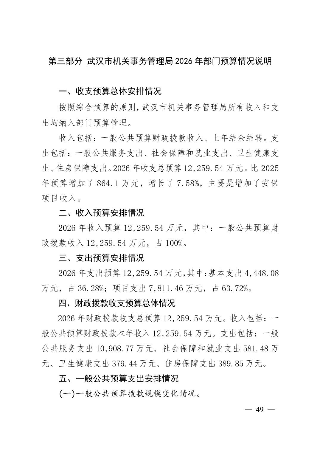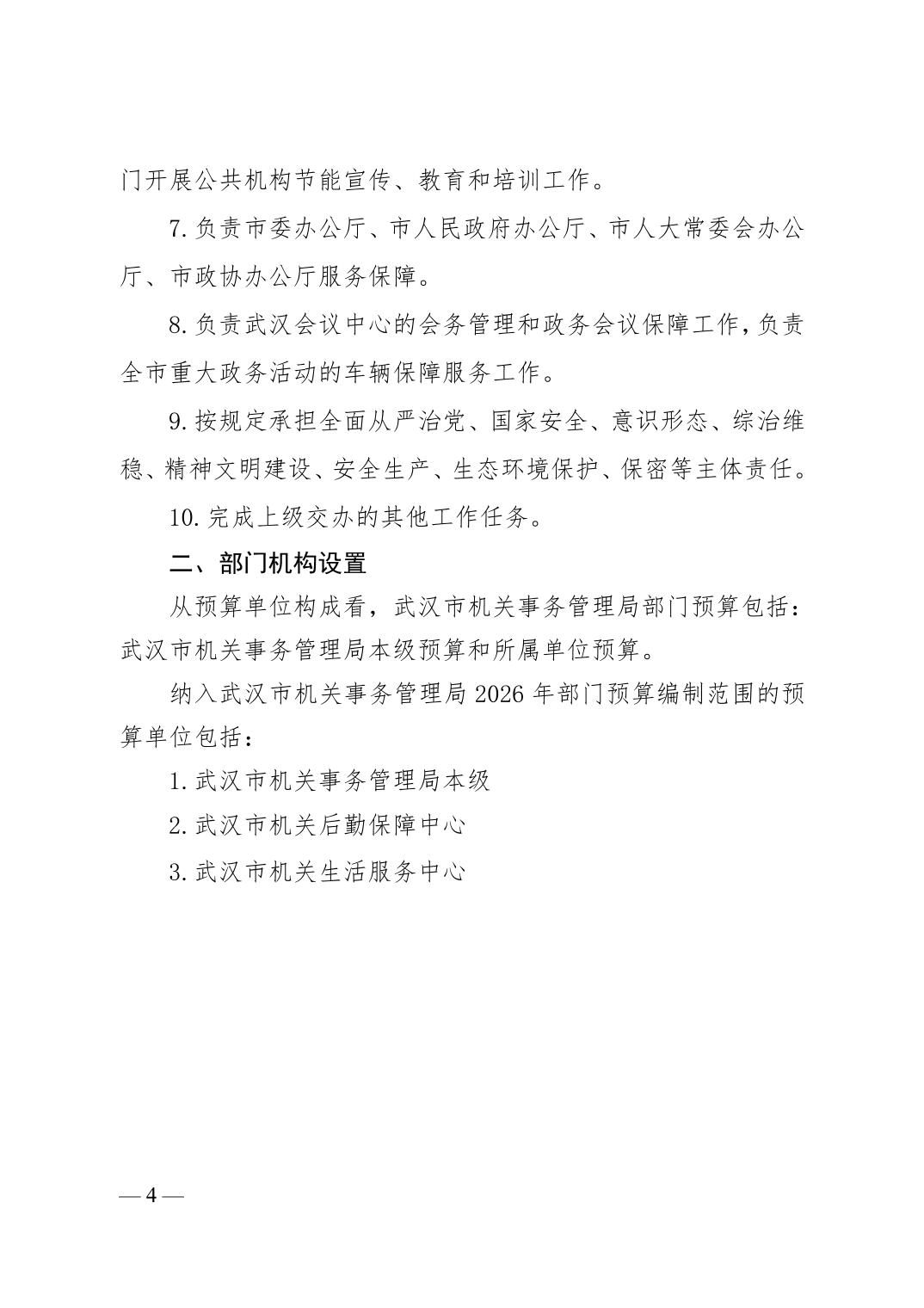 武汉市机关事务管理局2026年部门预算