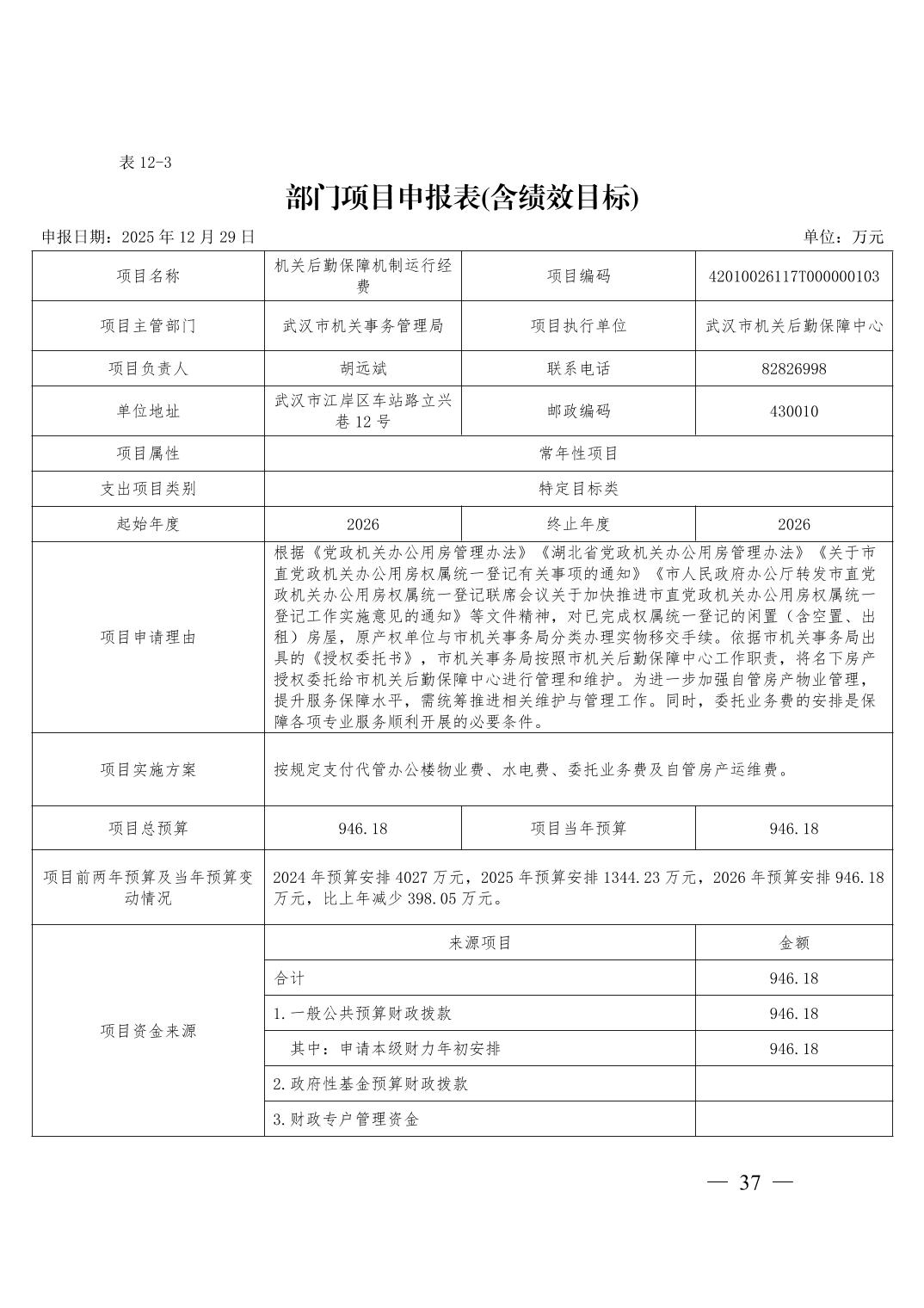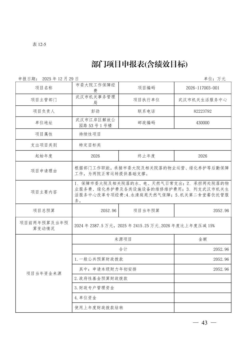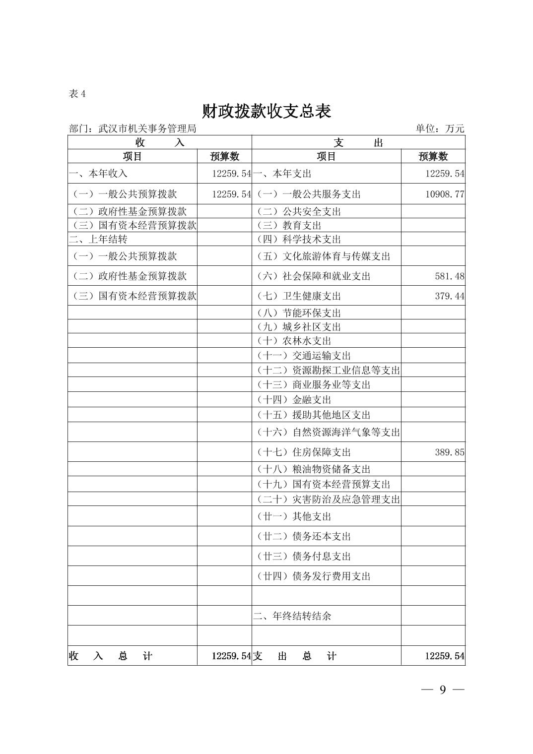 武汉市机关事务管理局2026年部门预算