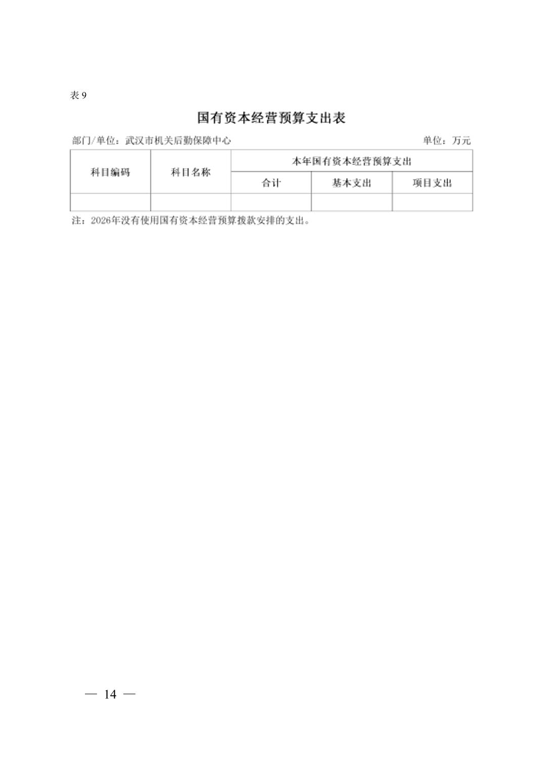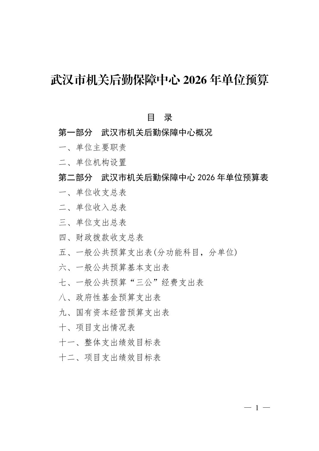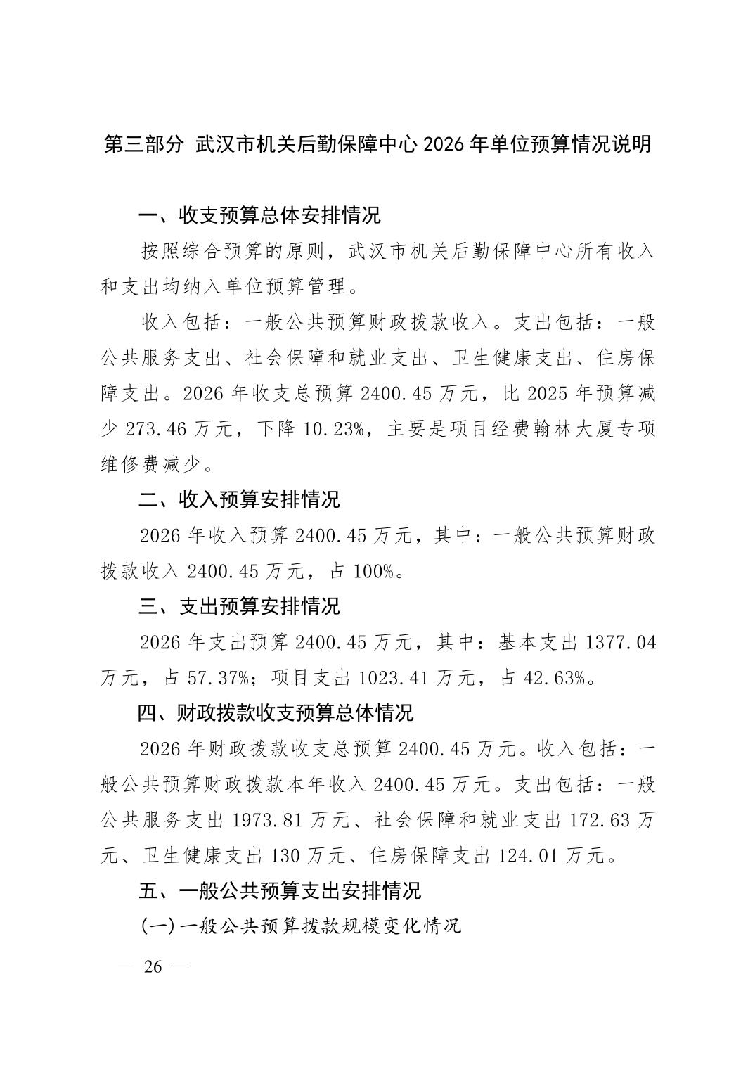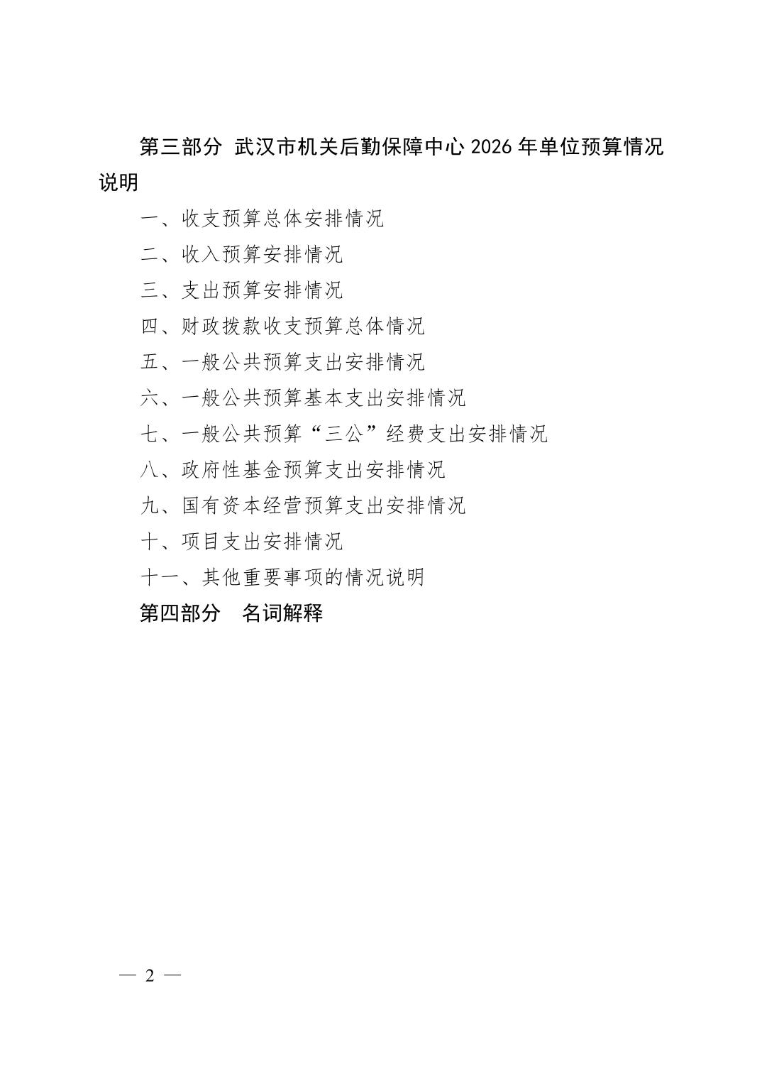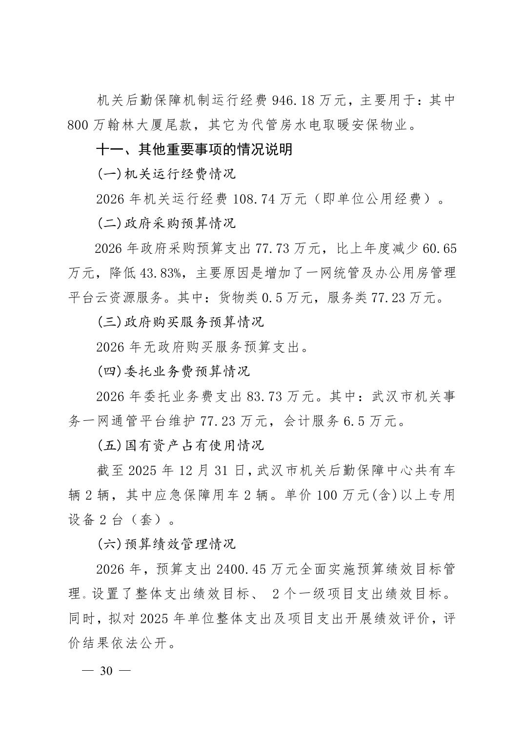 武汉市机关后勤保障中心 2026 年单位预算
