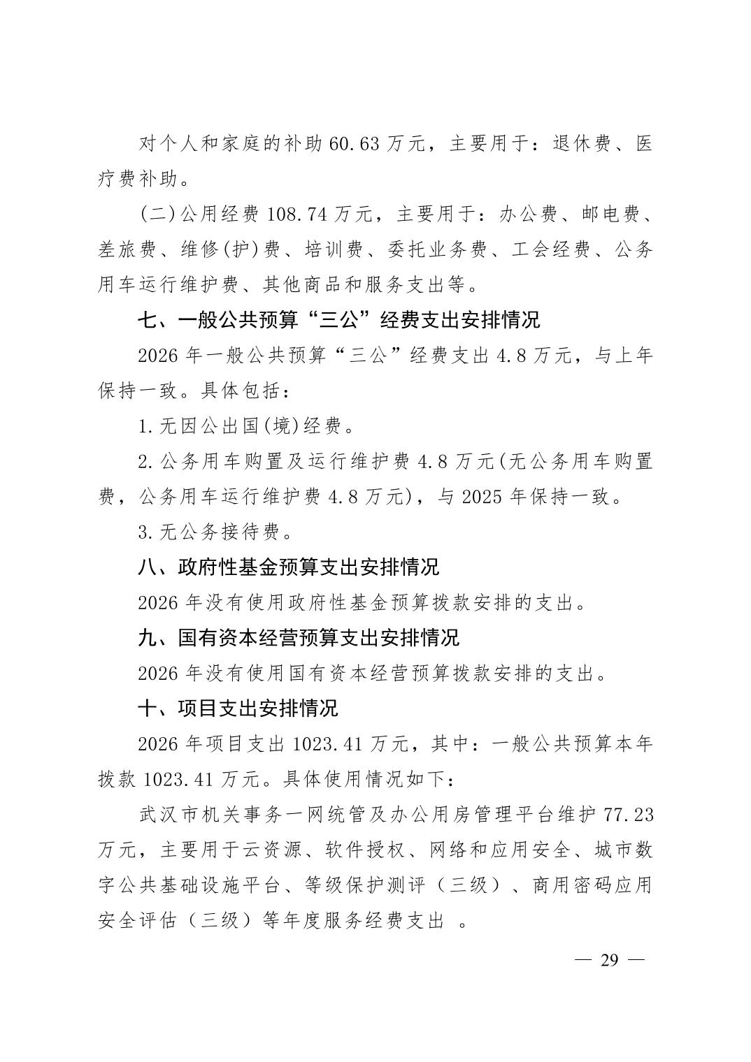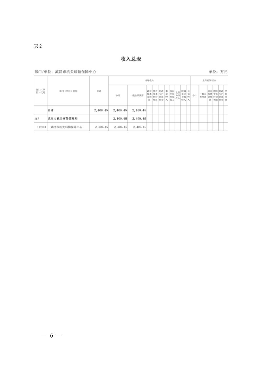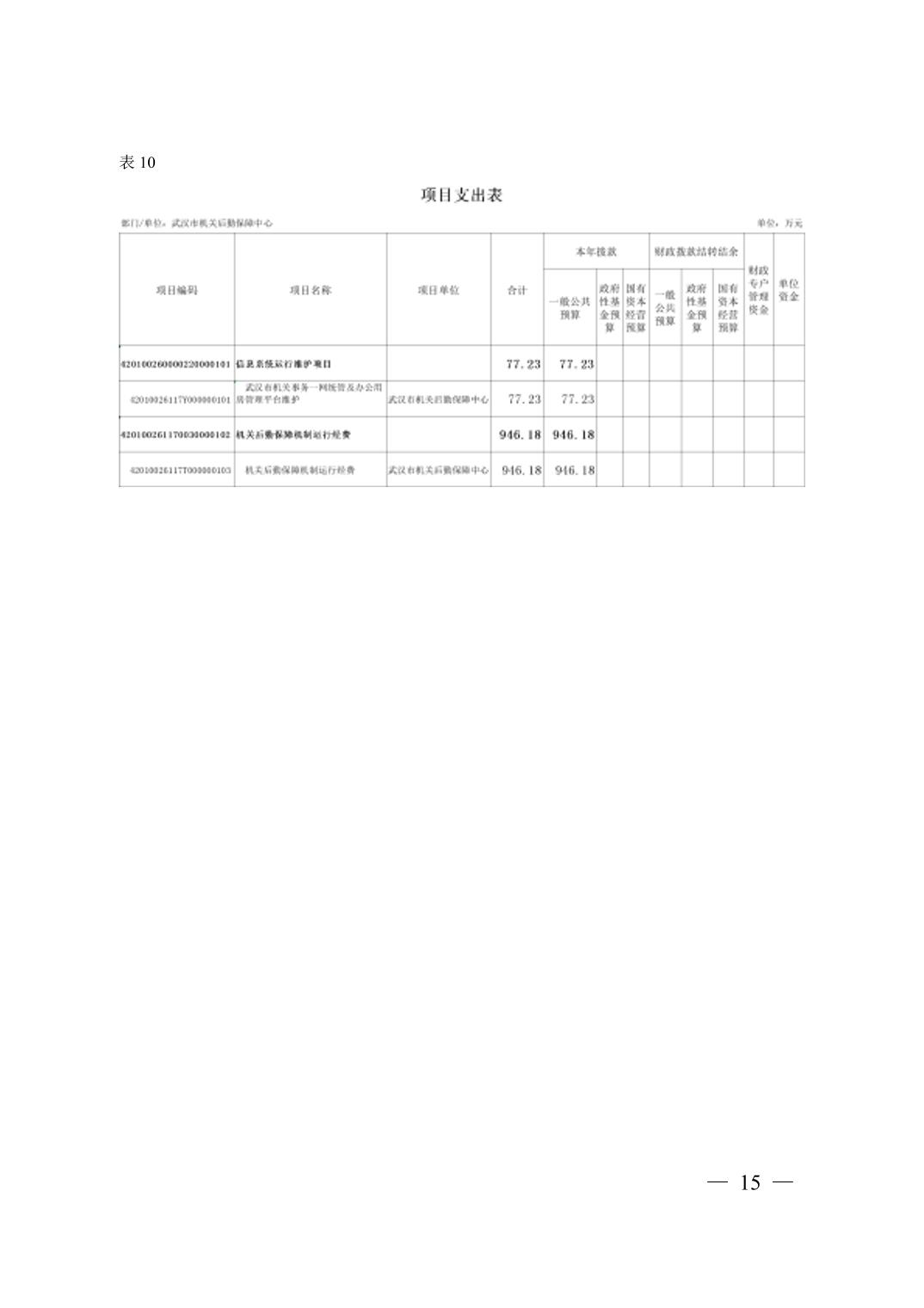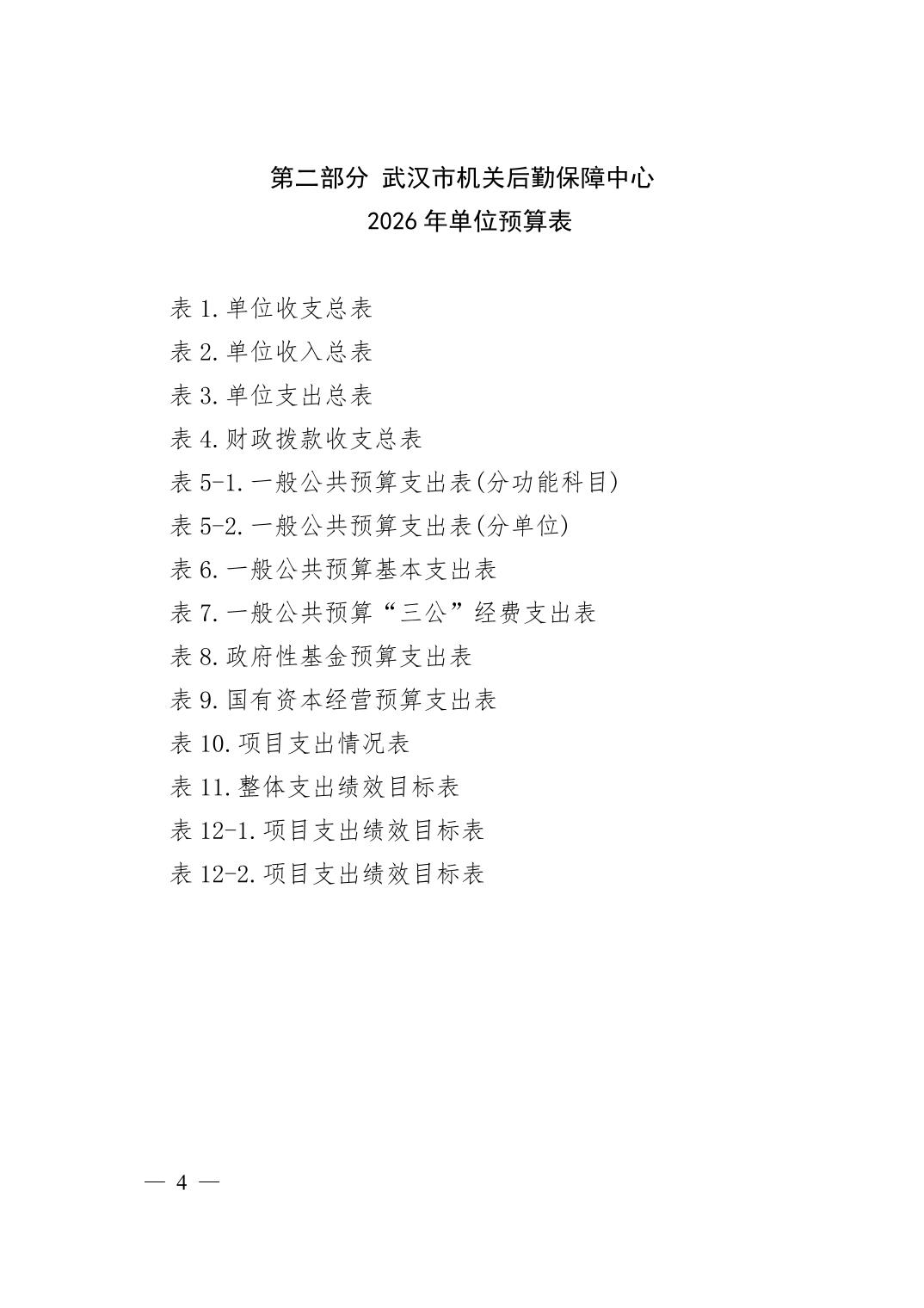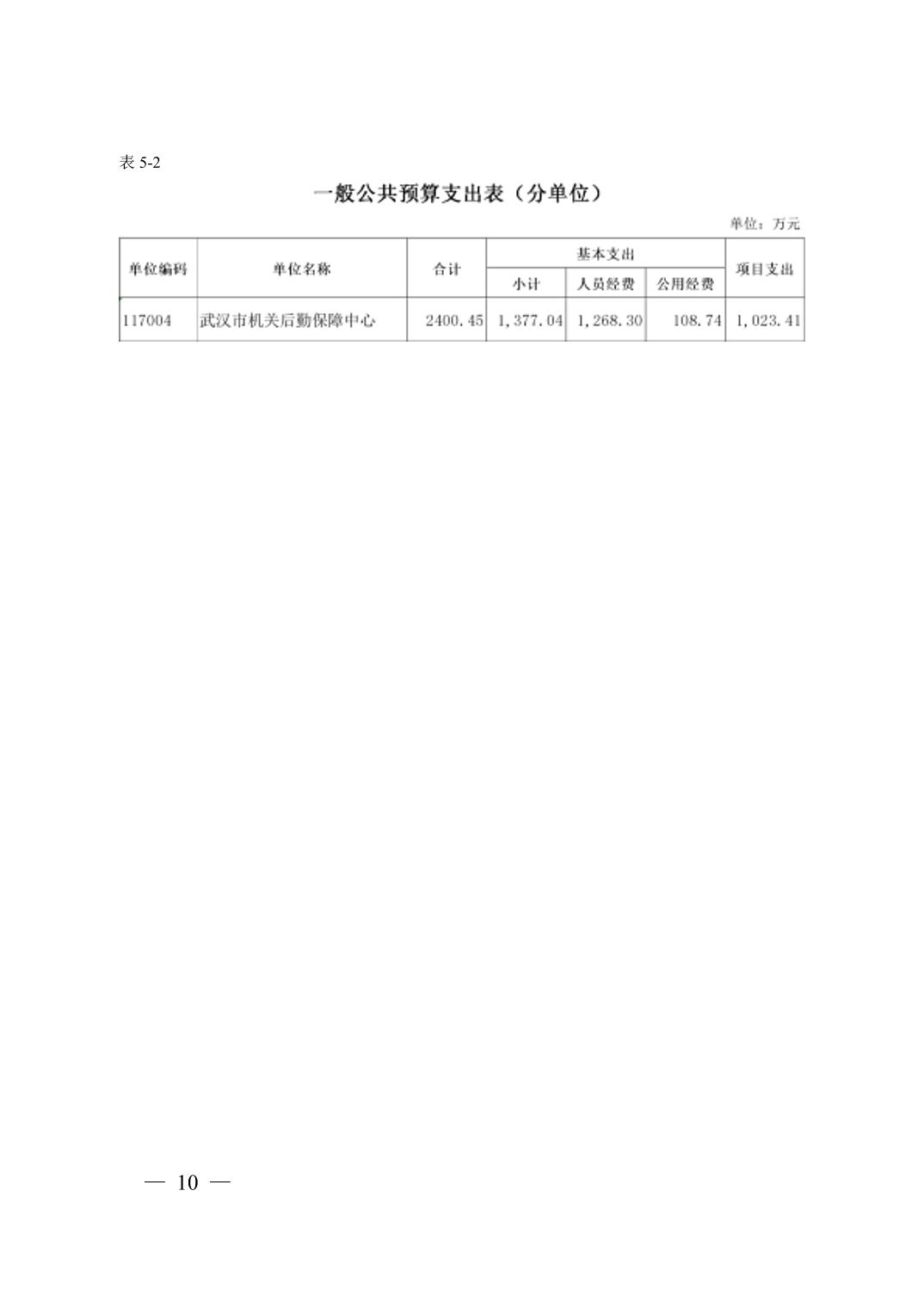 武汉市机关后勤保障中心 2026 年单位预算