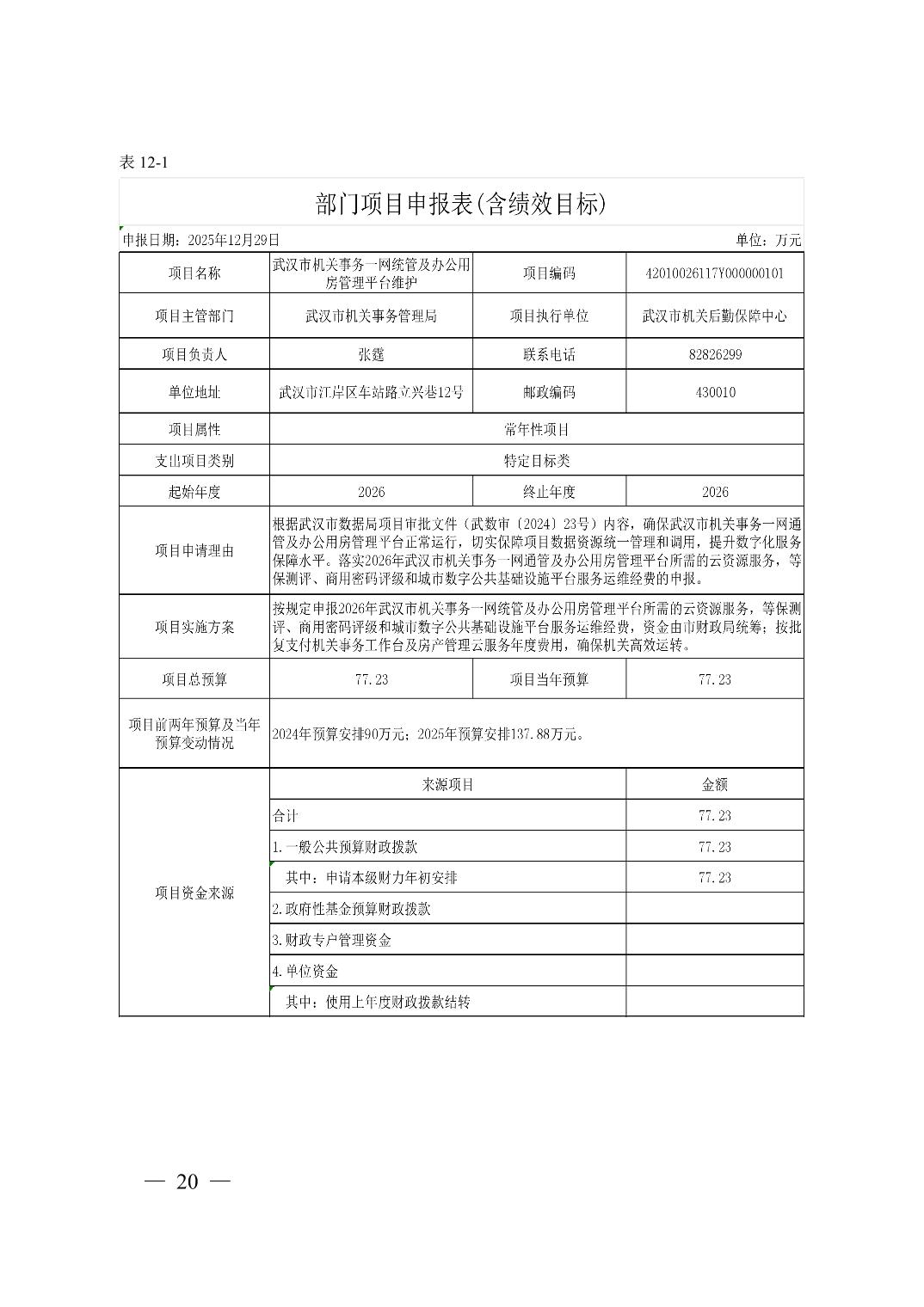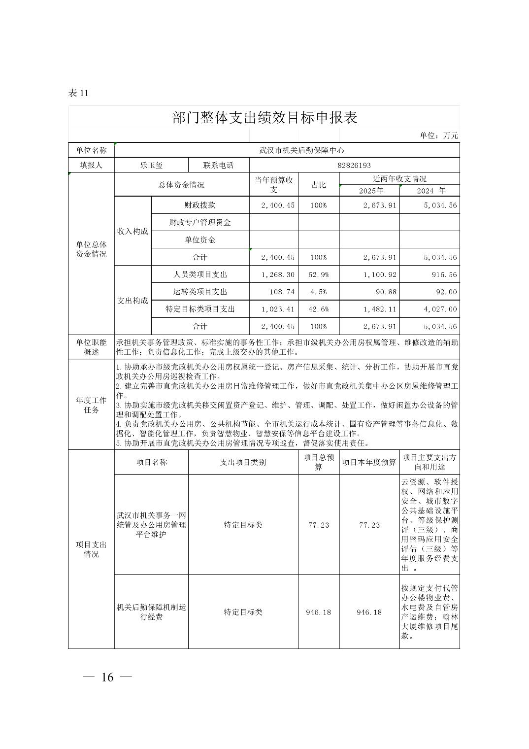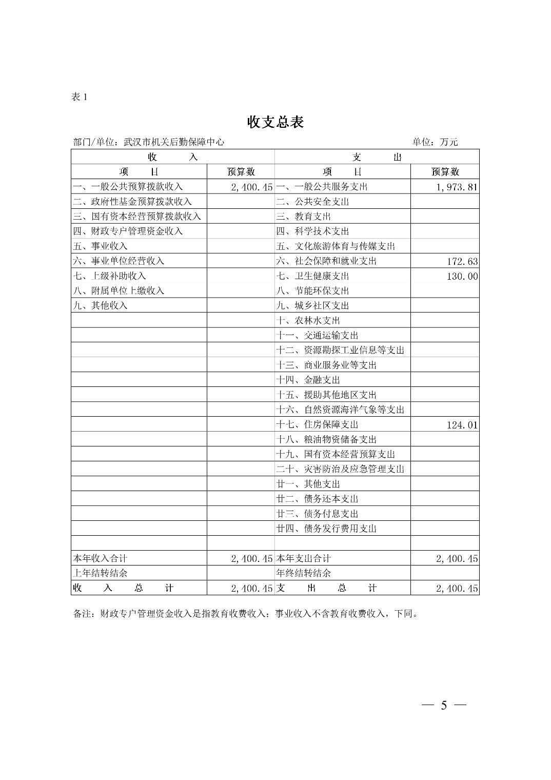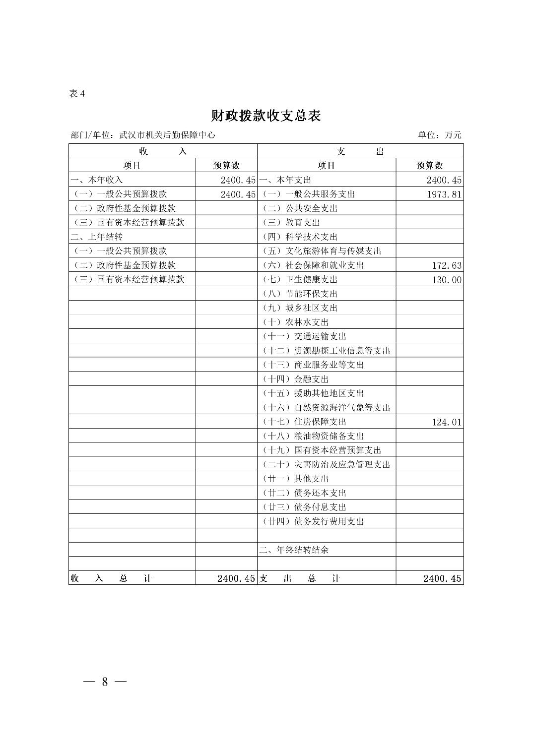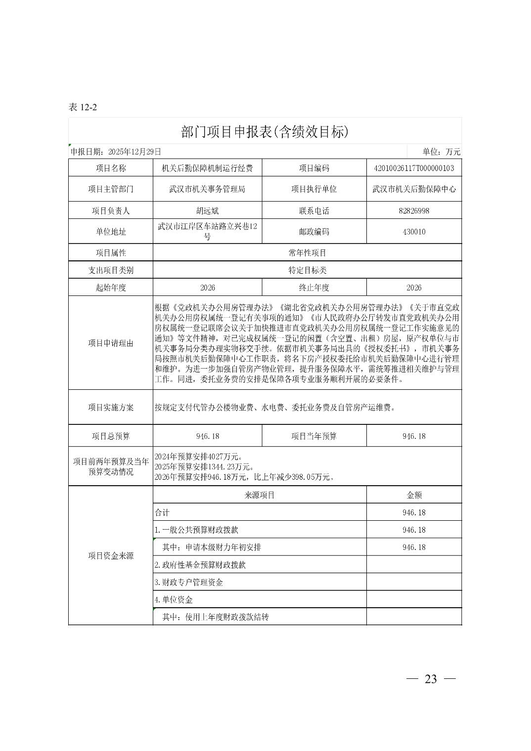 武汉市机关后勤保障中心 2026 年单位预算
