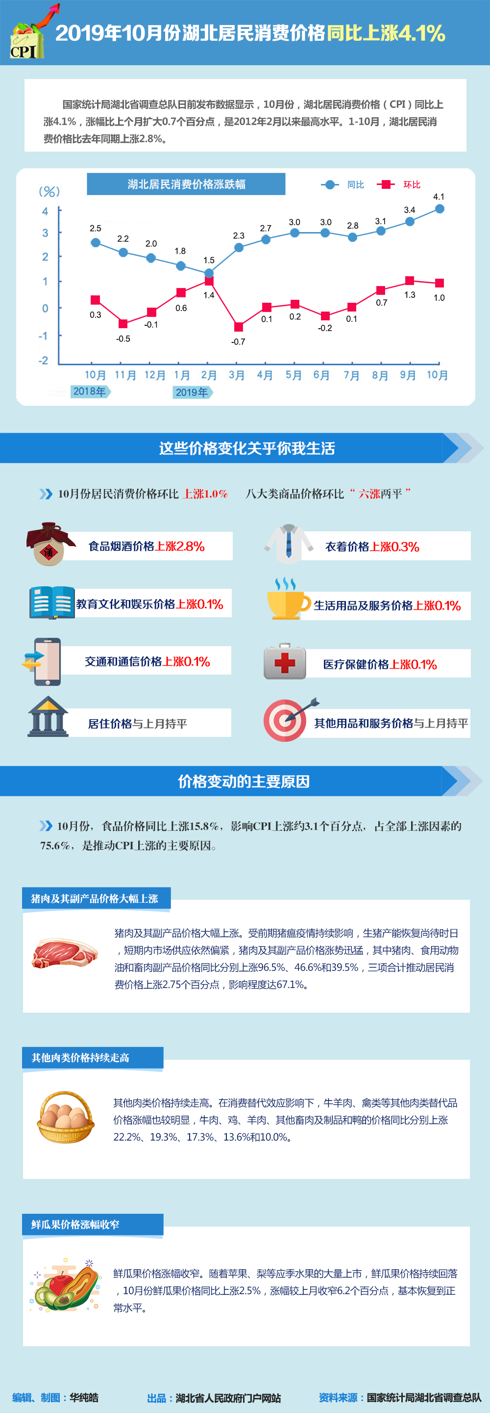 2019年10月份湖北居民消费价格同比上涨4.1%