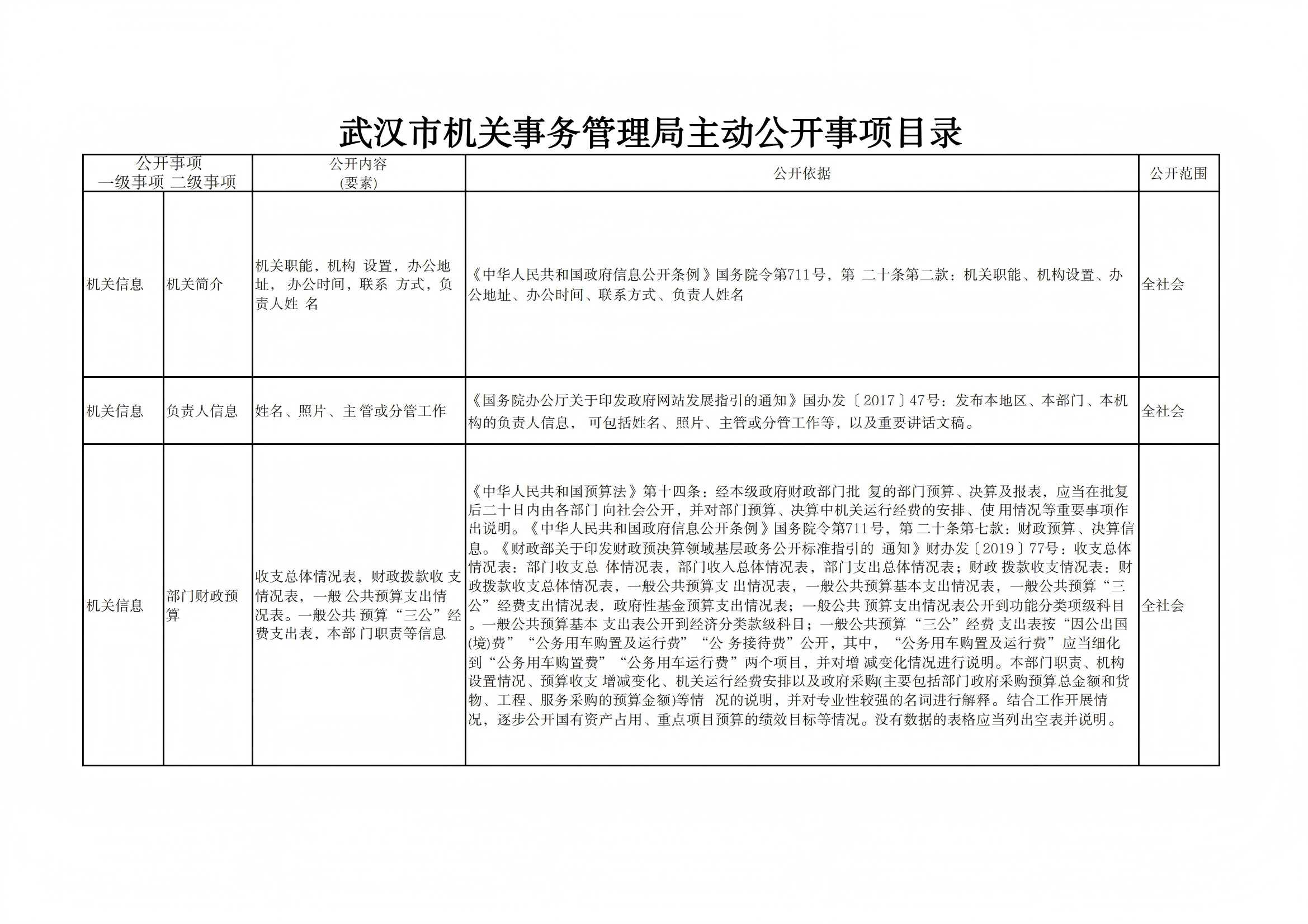 武汉市机关事务管理局2025年政府信息主动公开基本目录