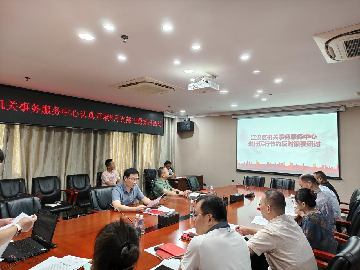 8 月 25 日上午 ,江汉区机关事务服务中心机关党支部开展了8 月支部主题党日活动。此次活动以 “牢记嘱托感恩奋进,为加快建成中部地区崛起重要战略支点接续奋斗” 为主题,在完成重温入党誓词、党费交纳、重要文件学习等既定流程之外,着重对《武汉市党政机关厉行节约反对浪费若干措施(试行)》进行学习,并按科室细化落实责任分解,彰显建设节约型机关的坚定决心。