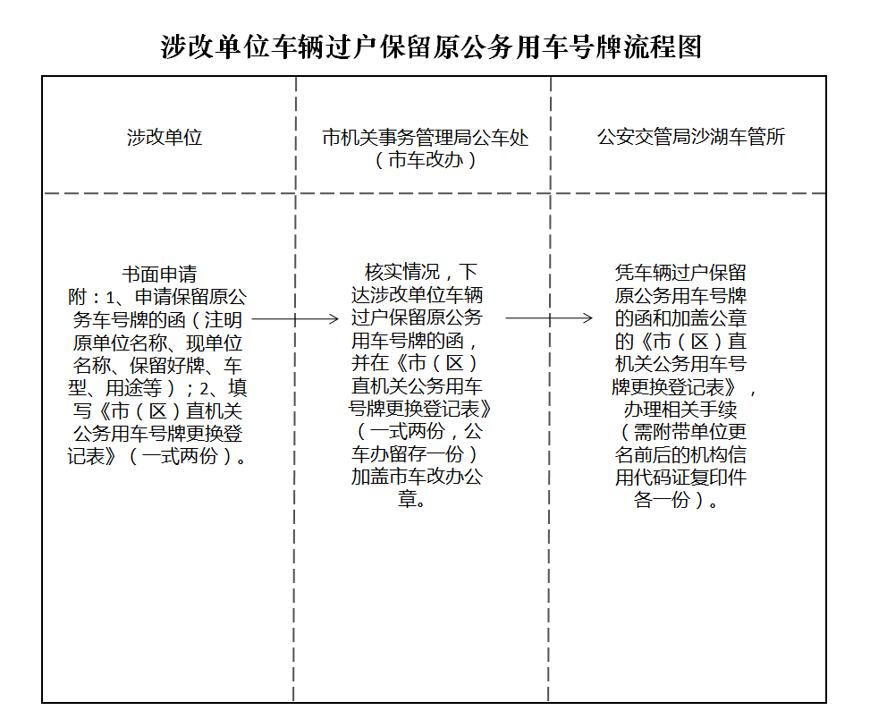 涉改单位车辆过户保留原公务用车号牌流程图